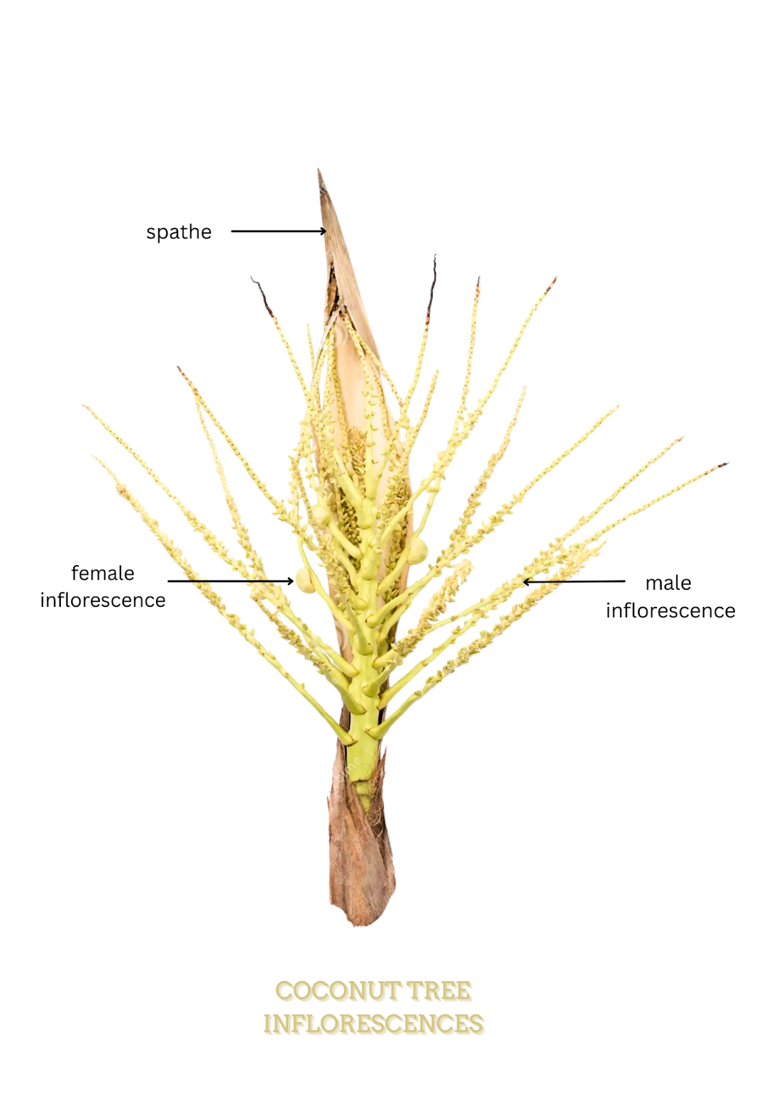 Timing is critical — the flowers can only be harvested once the tree has begun to bear fruit. If harvested too early, the flowers will not develop into mature coconuts, and the tree’s overall yield will be affected.