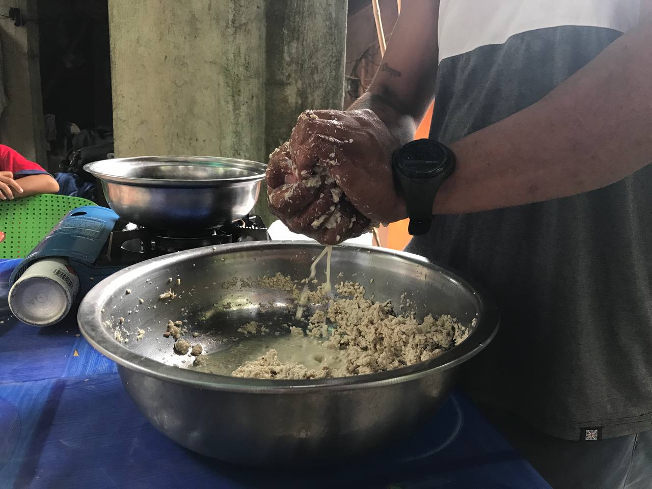At 15, Ries already knew how to prepare and cook Bulok after learning from his chef neighbors. “I started helping in kitchens when I was just nine years old. Since then, I learned how to make Bulok just by watching the chefs,” Ries says, as he carefully slices through the flowers. “At first, I only washed dishes during weddings. After about five years, I became an assistant chef, and eventually, the chef.”
