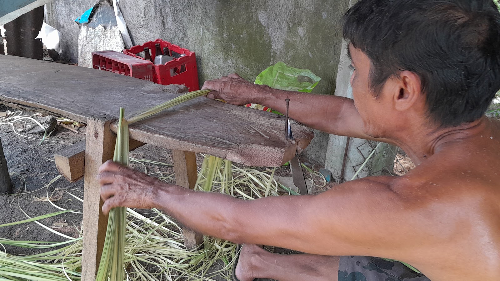 First, they harvest the anahaw. They only use the premature leaves that are not yet opened. Next, they separate the leaves into strips through a process called “pagriras.” Men are mostly tasked to do this step since it requires strength and endurance. And then, they wait for the strips to lighten by drying them under the sun.