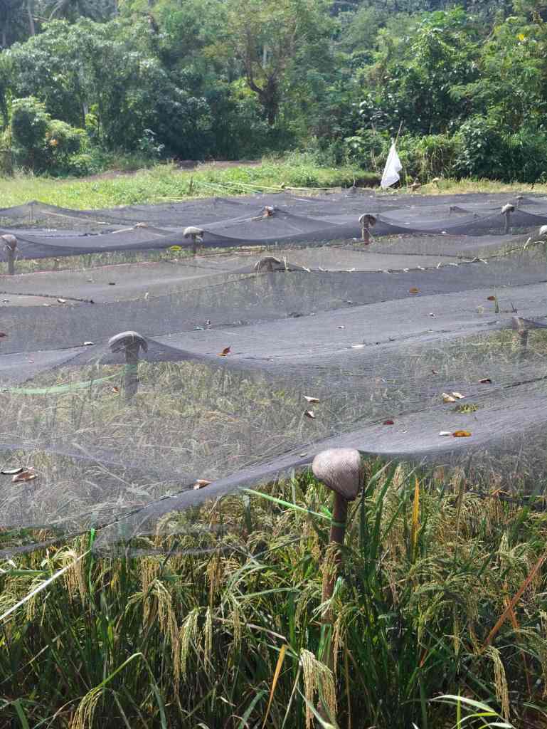 A protective net shields ripening rice from birds and pests. | via Jerna Marie Alzaga